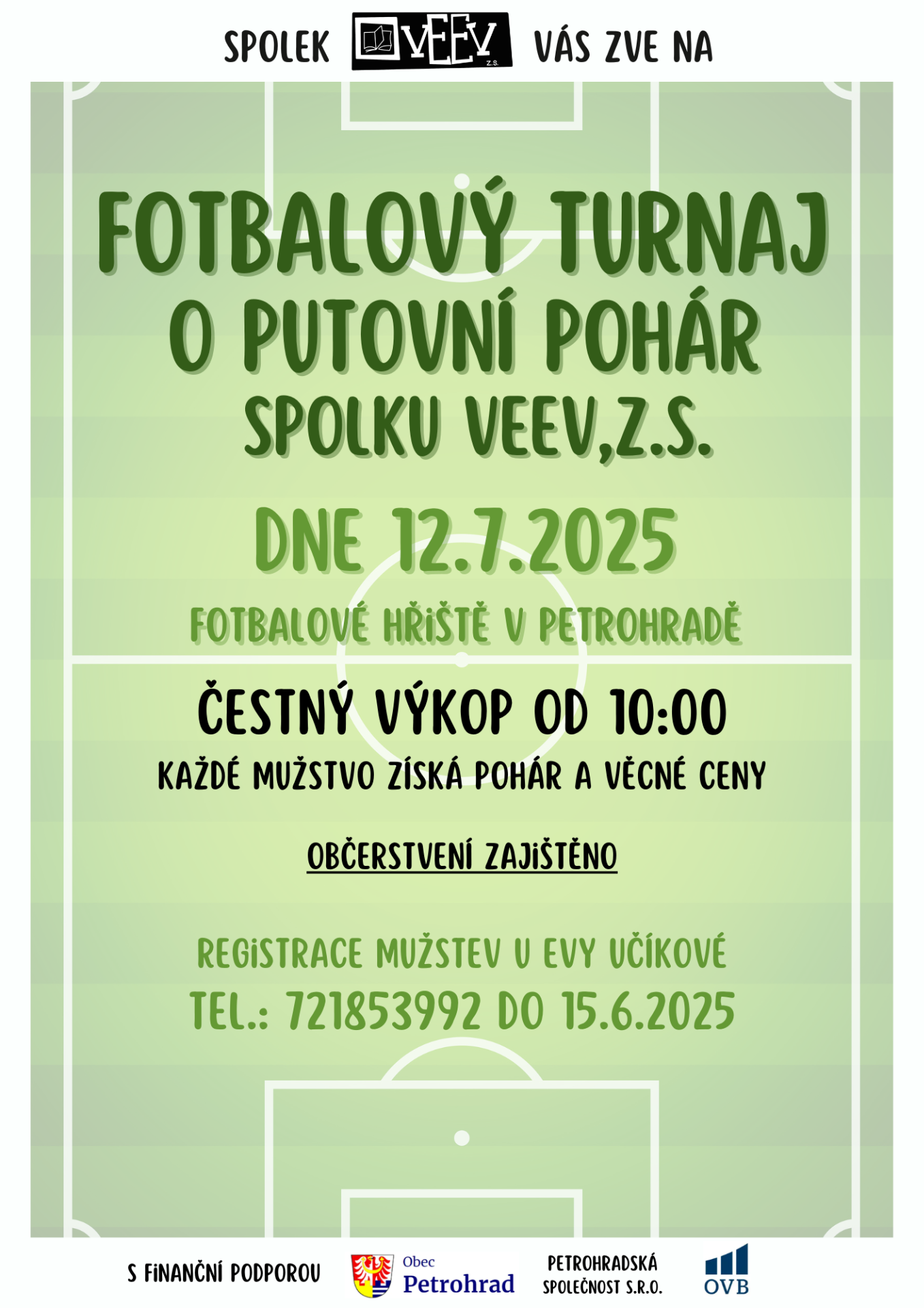 Dne 12.7.2025 se konal tradiční fotbalový turnaj o putovní pohár spolku VEEV v Petrohradě. Turnaje se zúčastnilo 5 mužstev z Kladna, Petrohradu, Žatce, Lubence. Celý den vládla sportovní a především přátelská atmosféra. Své prvenství obhájil Spartak Lubenec. Na druhém místě se umístil FK Petrohrad, na třetím místě AC Chmel Žatec, čtvrtí skončili Pivní sprinteři Kladno a na krásném posledním místě Trafic Kladno. V kategorii nejstarší hráč byl vyhlášen Miroslav Smolinský z Lubence a nejlepším střelcem se stal Patrik Ledvina také z Lubence.